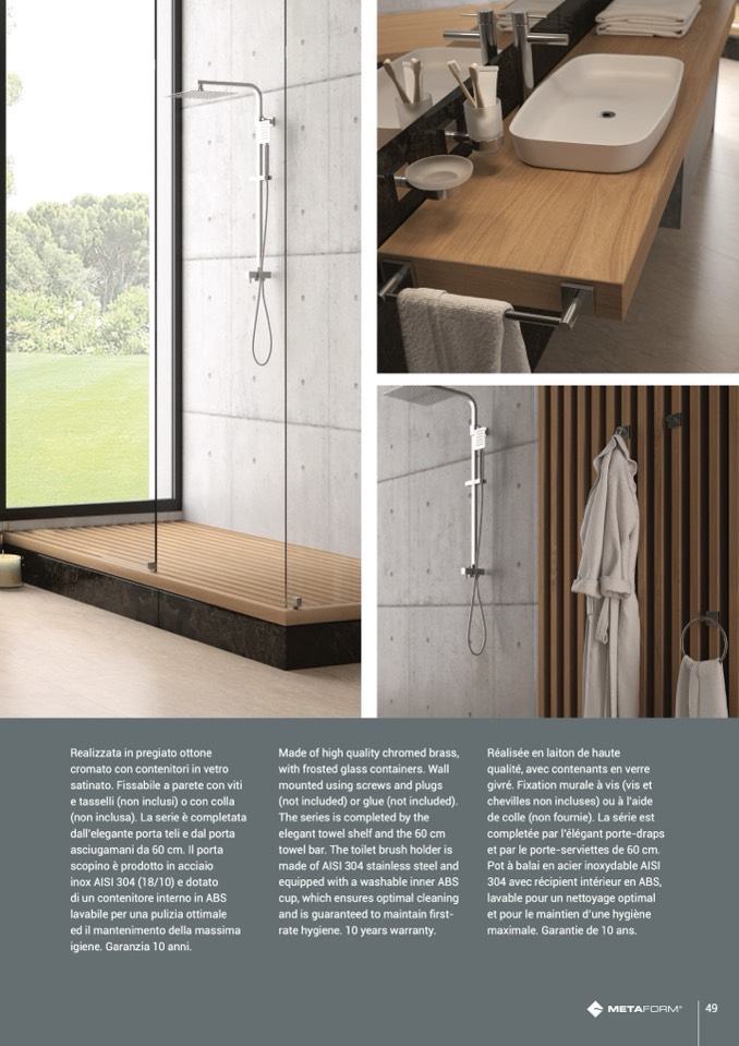 satinato. Fissabile a parete con viti