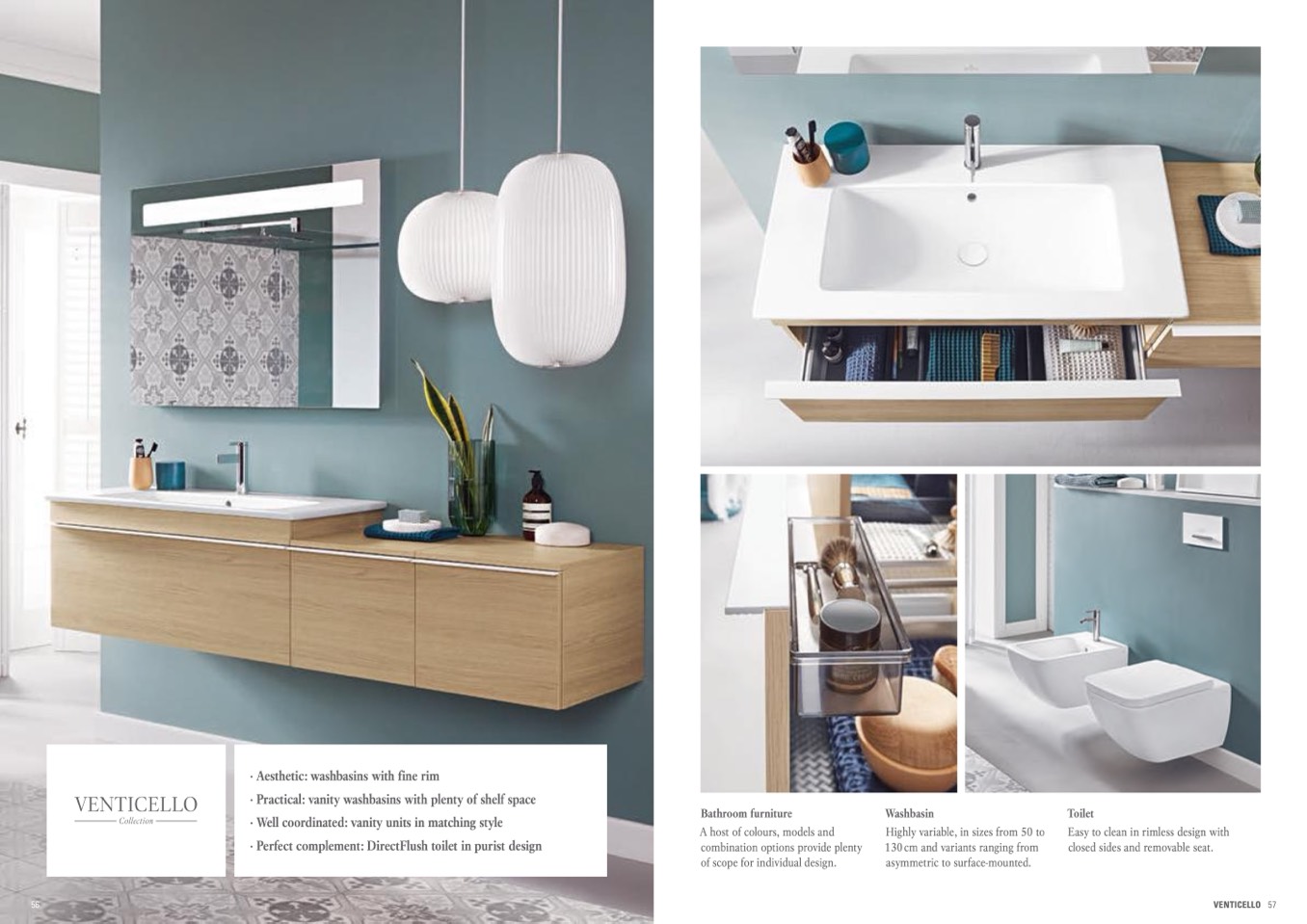 · Practical: vanity washbasins with plenty of shelf space