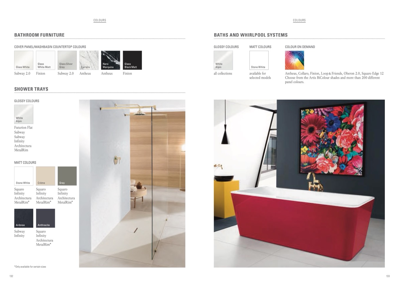 COVER PANEL/WASHBASIN COUNTERTOP COLOURS