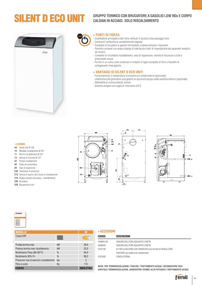 - Completo di circolatore riscaldamento, vaso di espansione, valvola di sicurezza a 3 bar e
