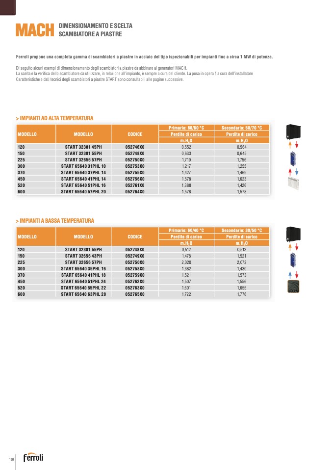 Ferroli propone una completa gamma di scambiatori a piastre in acciaio del tipo ispezionabili per impianti