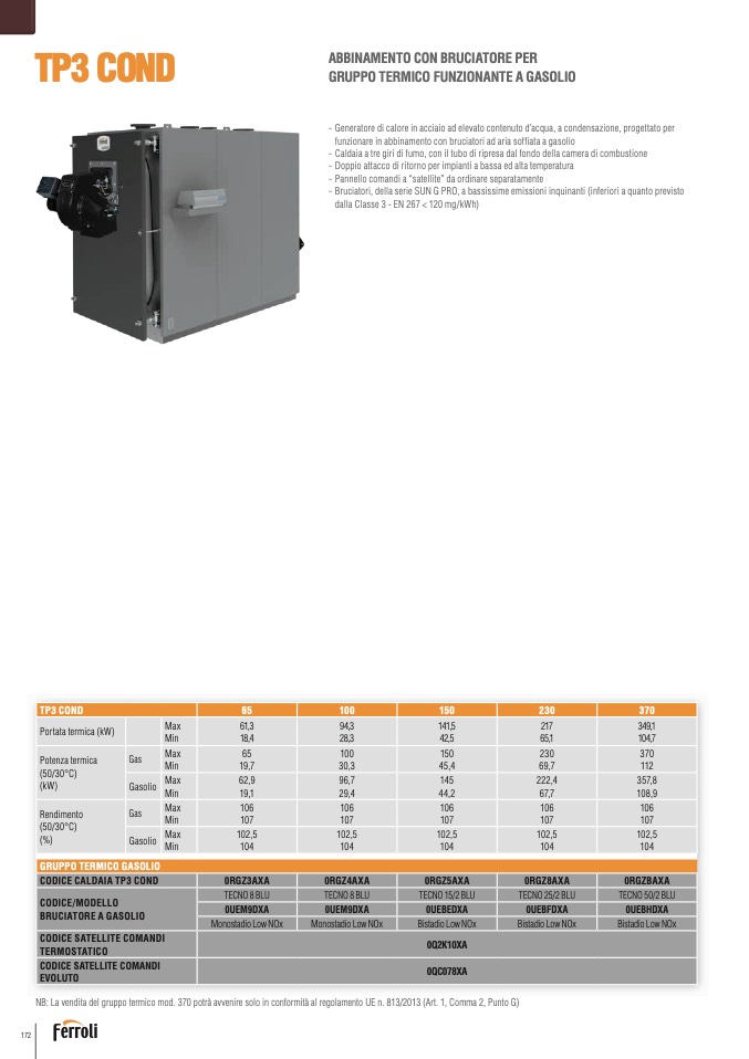 NB: La vendita del gruppo termico mod. 370 potrà avvenire solo in conformità al regolamento UE n. 813/2013 (Art. 1, Comma 2, Punto G)