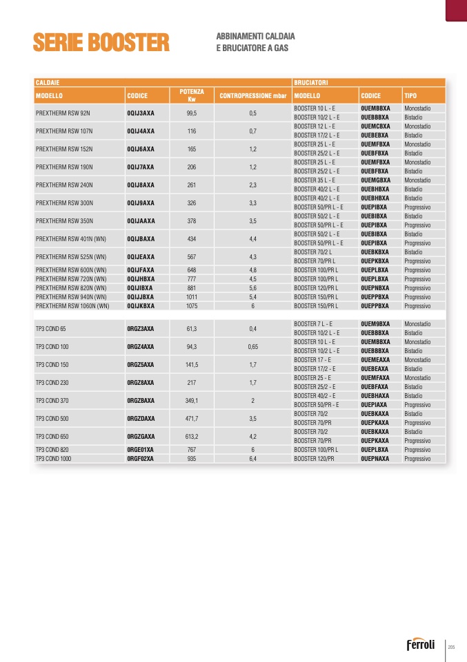 SERIE BOOSTERABBINAMENTI CALDAIA