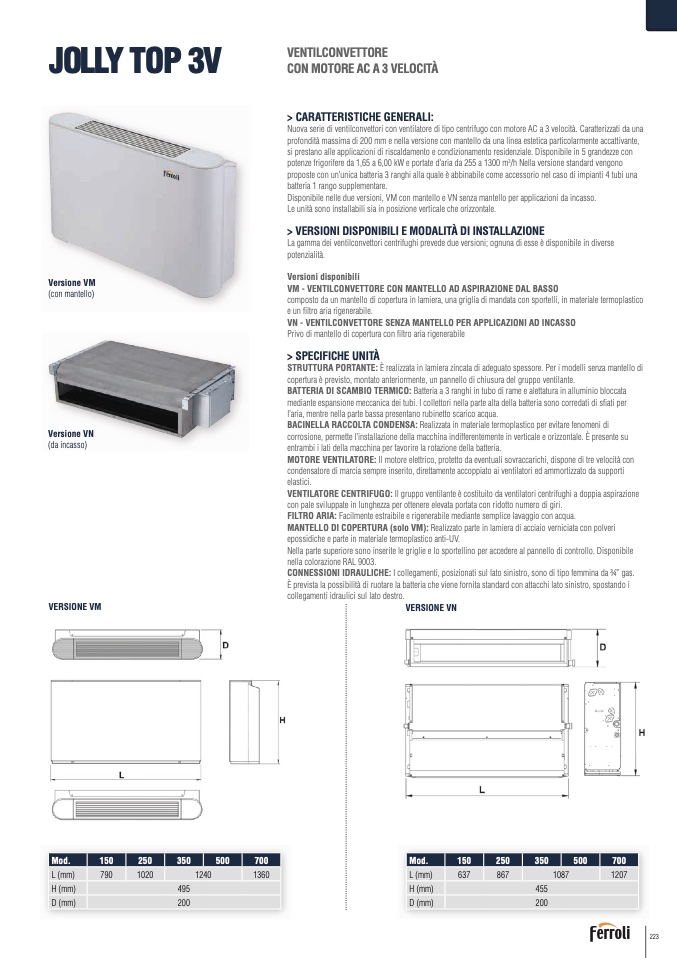 Nuova serie di ventilconvettori con ventilatore di tipo centrifugo con motore AC a 3 velocità. Caratterizzati da una