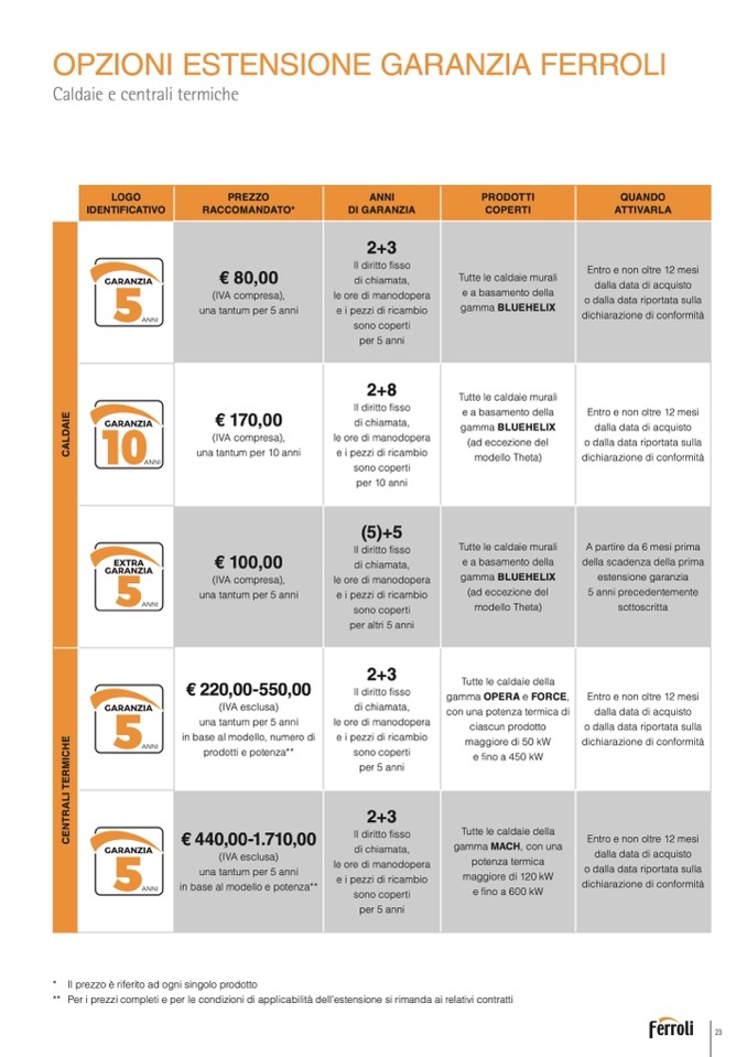 Per i prezzi completi e per le condizioni di applicabilità dell’estensione si rimanda ai relativi contratti