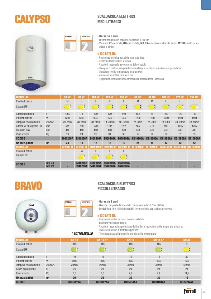 Gamma composta da 5 modelli con capacità da 10, 15 e 30 litri