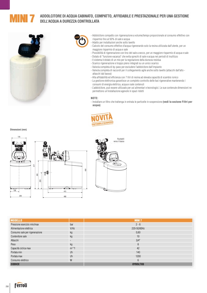 - Dotato di “funzione vacanza” che evita sprechi di sale e acqua nei periodi di inutilizz