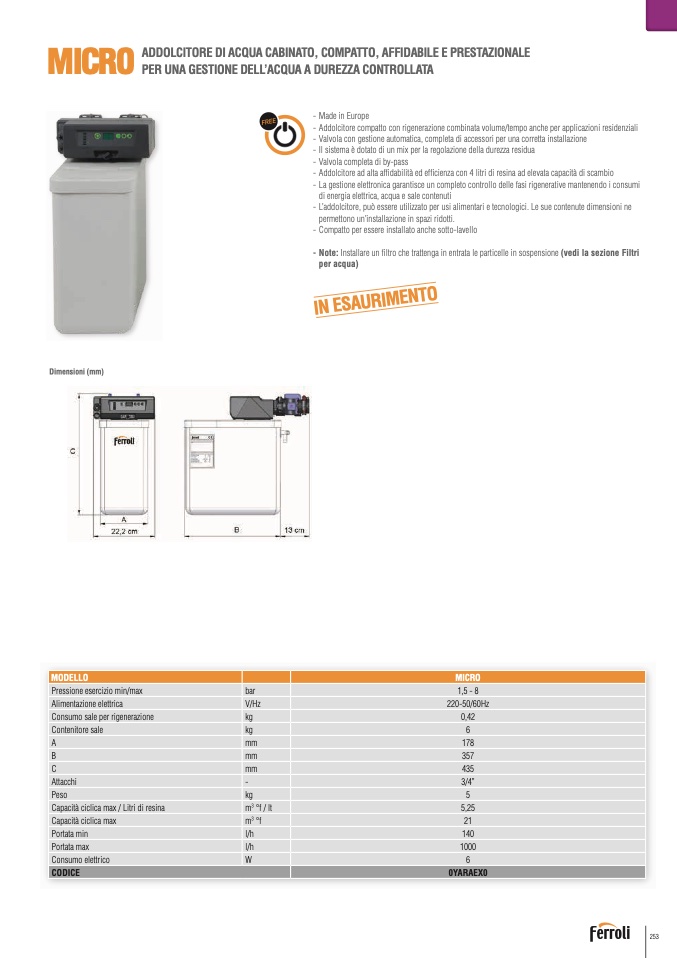 fidabilità ed efficienza con 4 litri di resina ad elevata capacità di scambi
