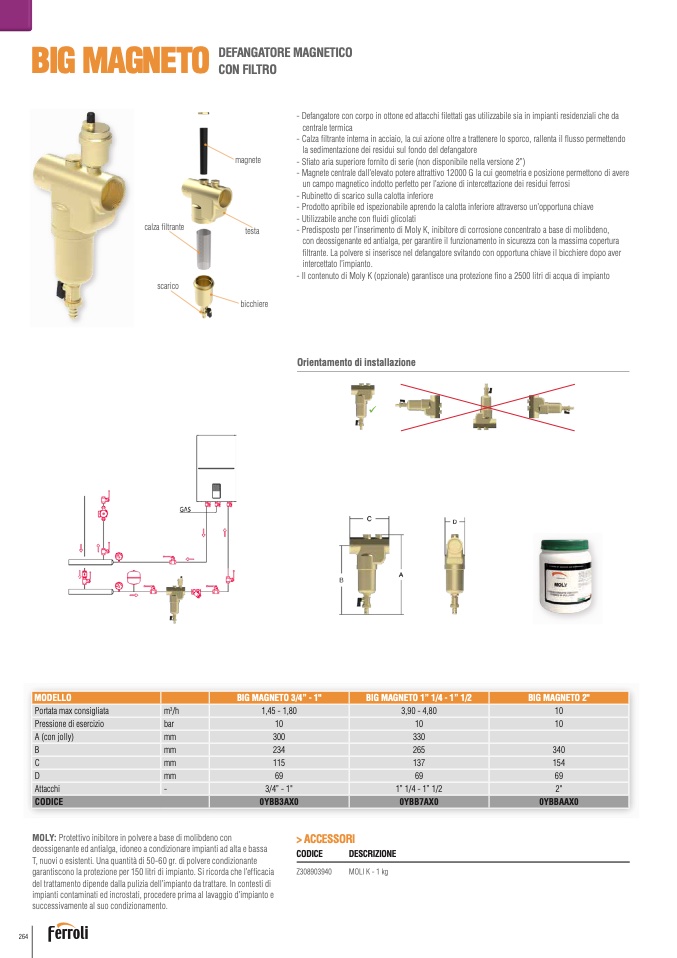 - Predisposto per l’inserimento di Moly K, inibitore di corrosione concentrato a base di molibdeno