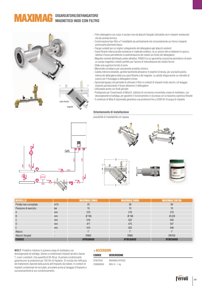 - Predisposto per l’inserimento di Moly K, inibitore di corrosione concentrato a base di molibdeno, co