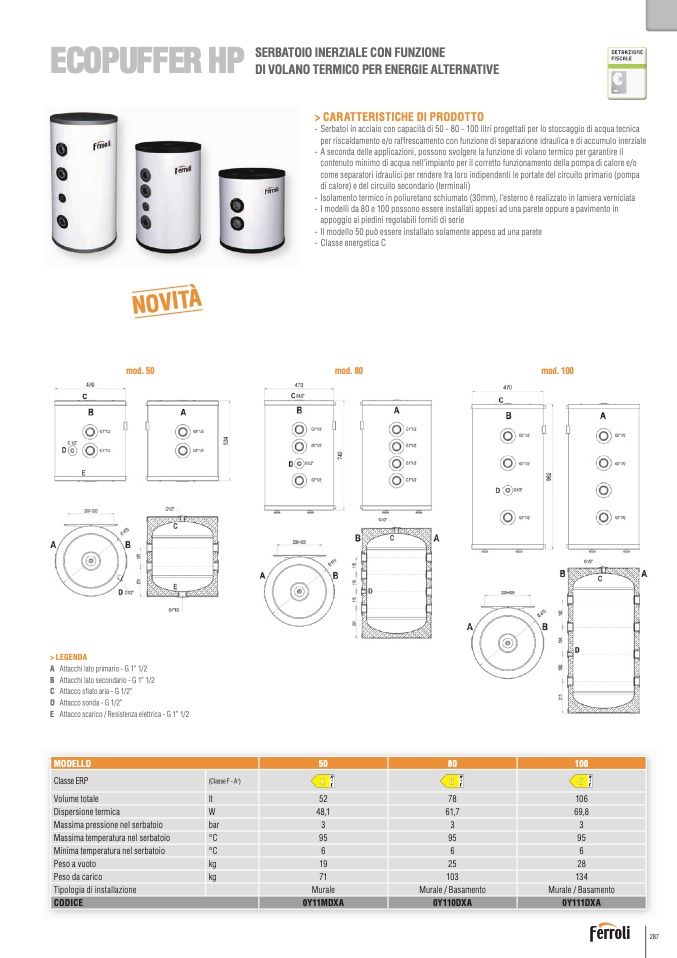per riscaldamento e/o raffrescamento con funzione di separazione idraulica e di accumulo inerzial