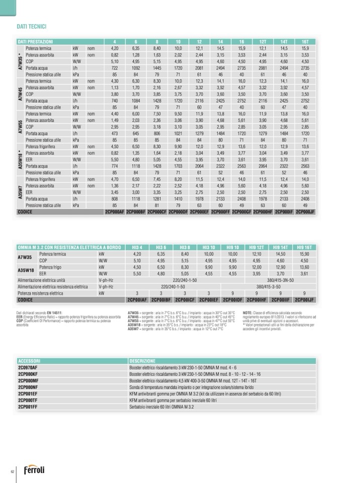 A7W35 = sorgente : aria in 7°C b.s. 6°C b.u. / impianto : acqua in 30°C out 35°C