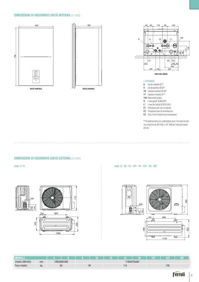 * Per abbinamento con unità esterne mod. 4-6 viene fornito