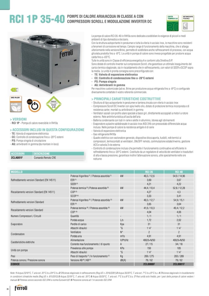 Le pompe di calore RCI 35-40 in R410a sono dedicate a soddisfare le esigenze di piccoli e med