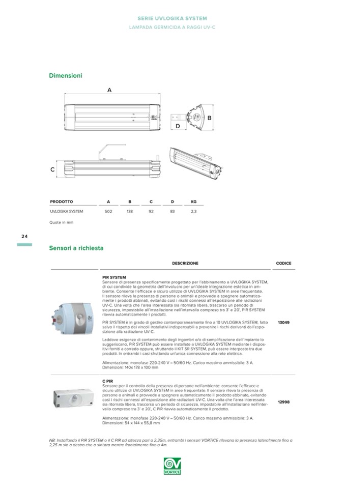 suggeriscano, PIR SYSTEM può essere installato a UVLOGIKA SYSTEM mediante i dispos-