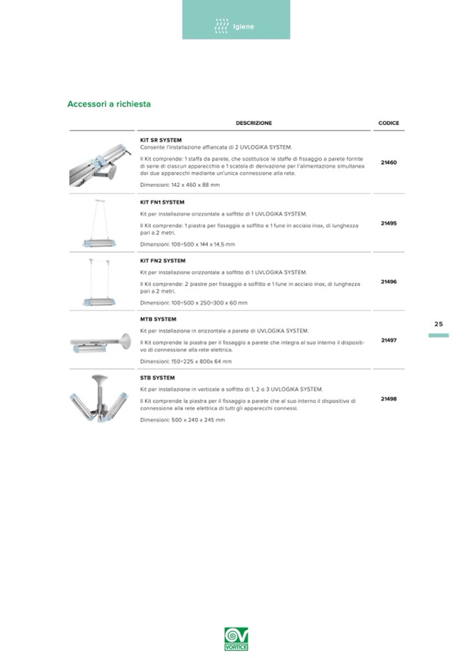 Kit per installazione in verticale a soffitto di 1, 2 o 3 UVLOGIKA SYSTEM.