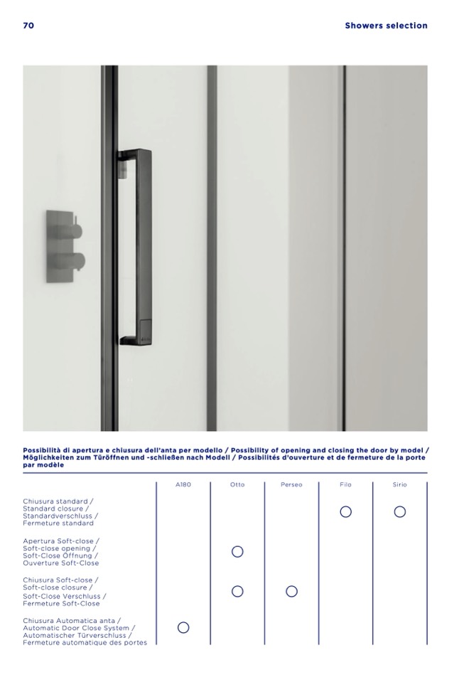 Possibilità di apertura e chiusura dell’anta per modello / Possibility of opening and closing the door by model /