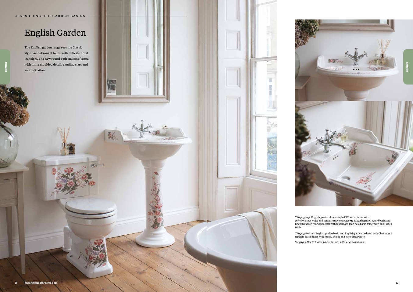 See page 22 for technical details on the English Garden basins.
