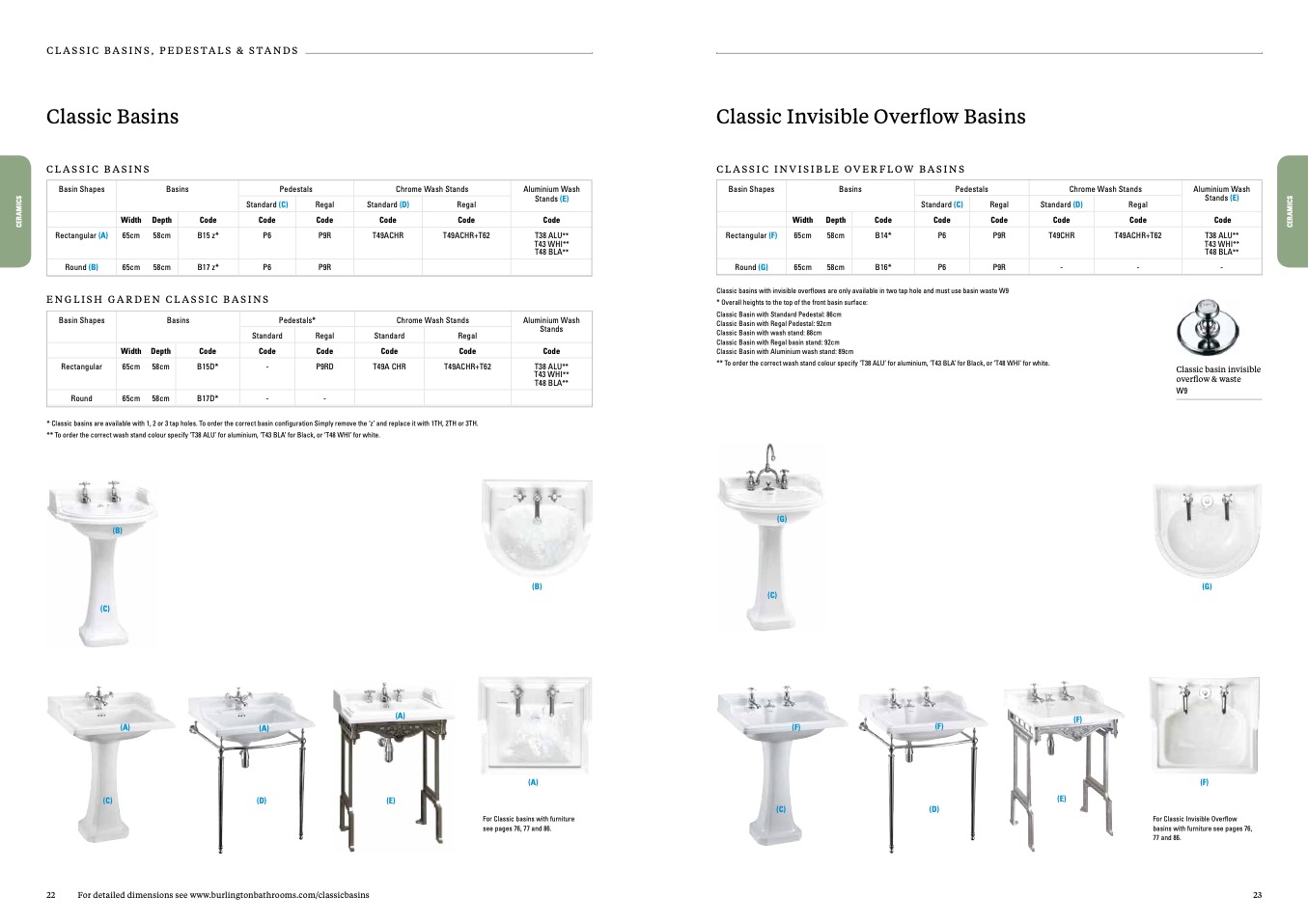 Classic basins with invisible overflows are only available in two tap hole and must use basin waste W9