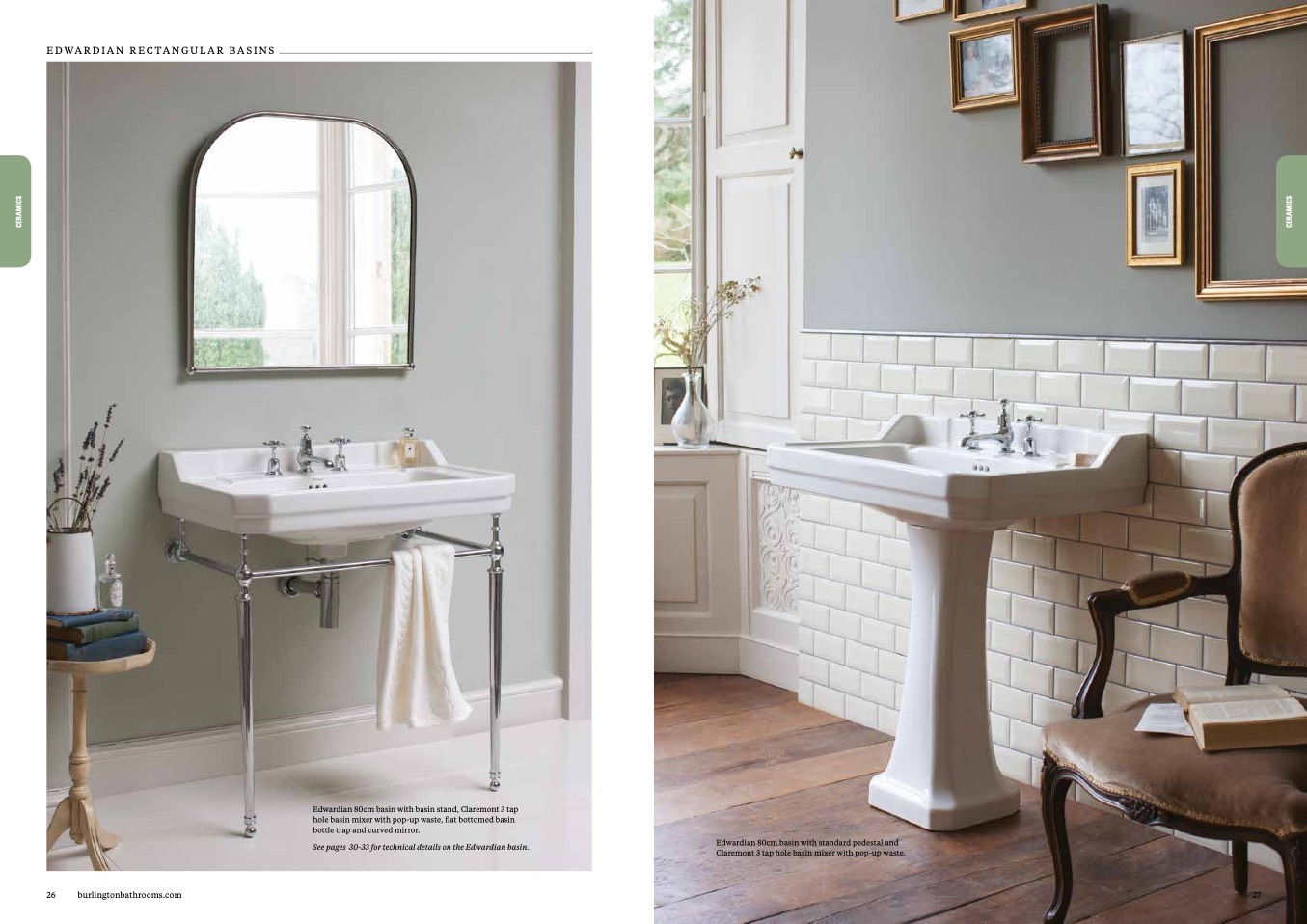 Edwardian 80cm basin with basin stand, Claremont 3 tap