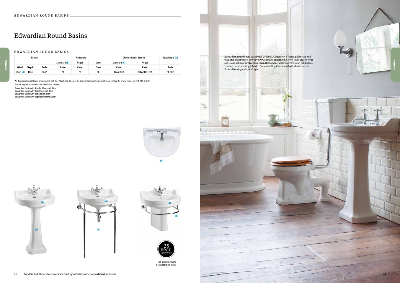 For detailed dimensions see www.burlingtonbathrooms.com/edwardianbasins