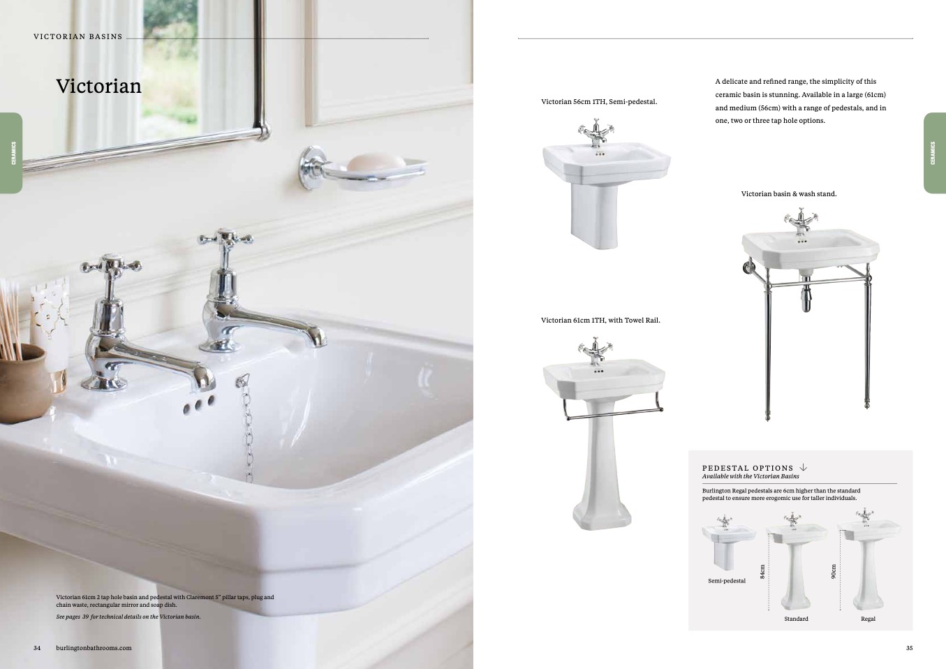 Victorian 61cm 2 tap hole basin and pedestal with Claremont 5” pillar taps, plug and