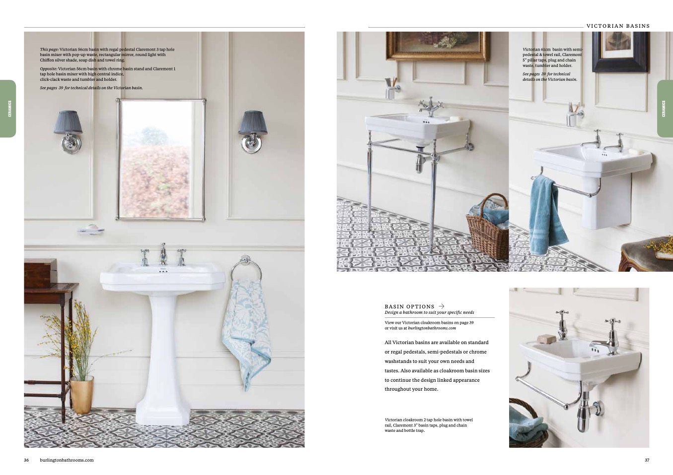 This page: Victorian 56cm basin with regal pedestal Claremont 3 tap hole