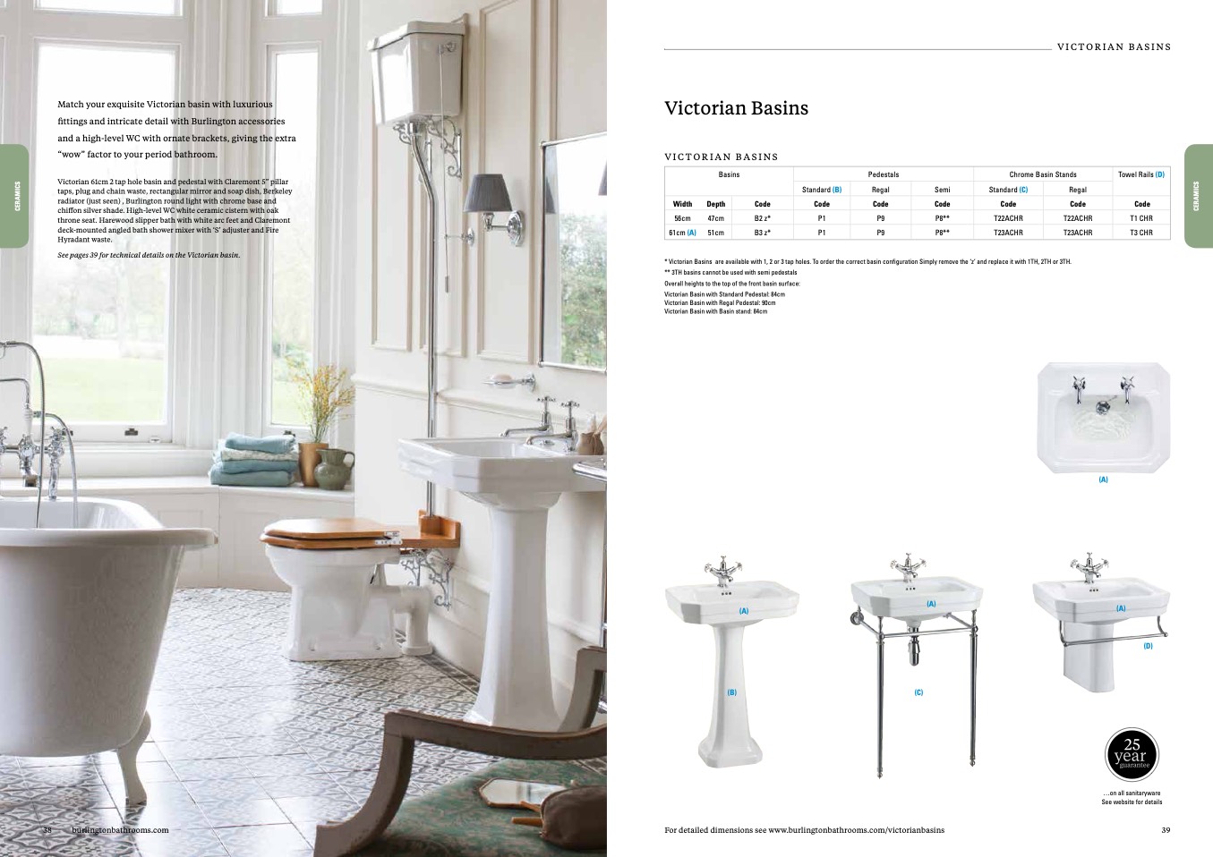 For detailed dimensions see www.burlingtonbathrooms.com/victorianbasins