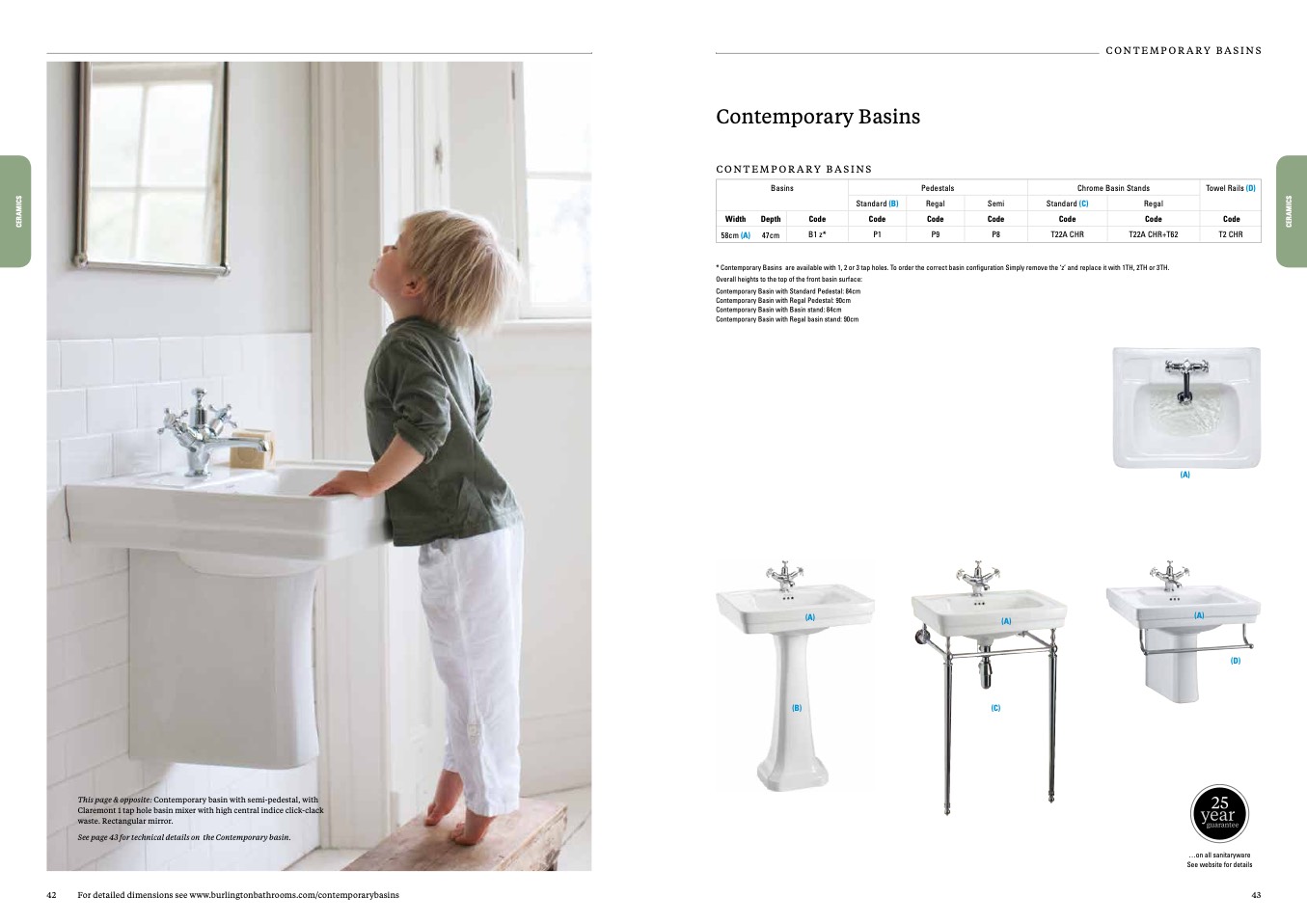 * Contemporary Basins are available with 1, 2 or 3 tap holes. To order the correct basin configuration Simply remove the ‘z’ and replace it with 1TH, 2TH or 3TH.