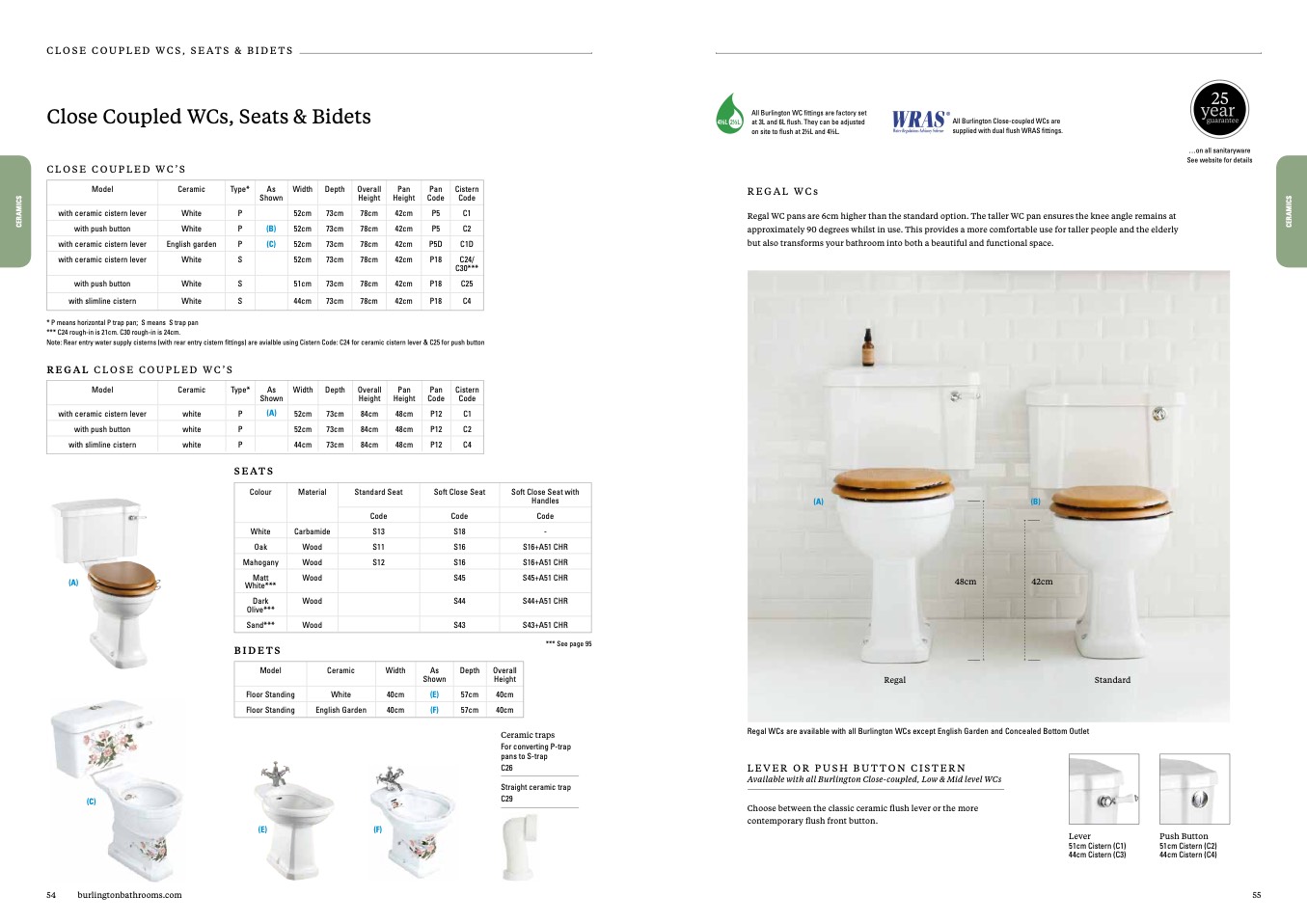 Regal WCs are available with all Burlington WCs except English Garden and Concealed Bottom Outlet
