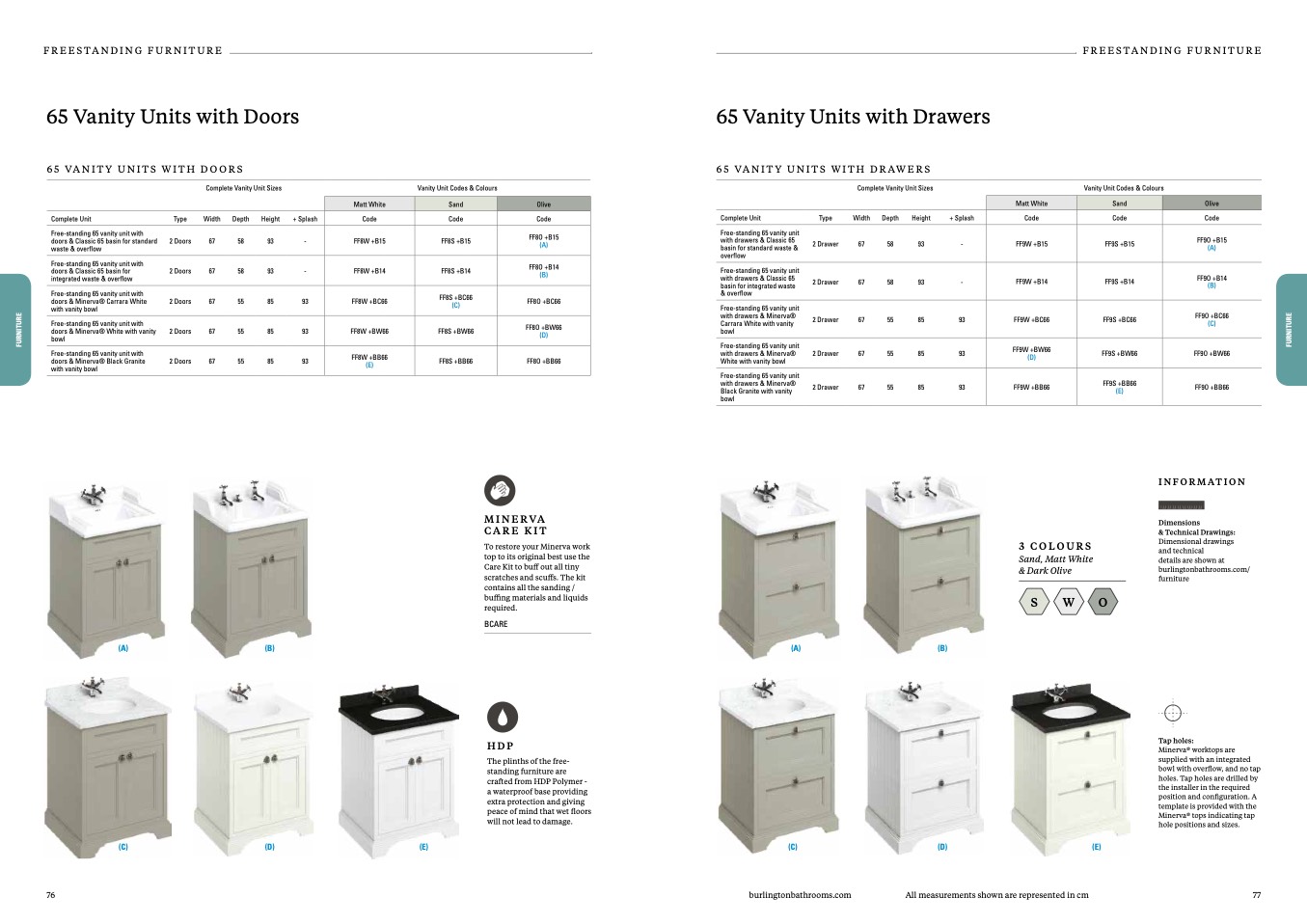 Vanity Unit Codes & Colours
