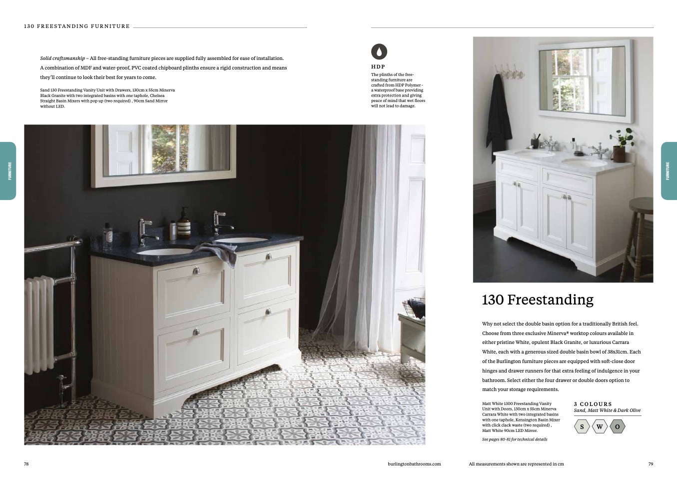 Sand 130 Freestanding Vanity Unit with Drawers, 130cm x 55cm Minerva