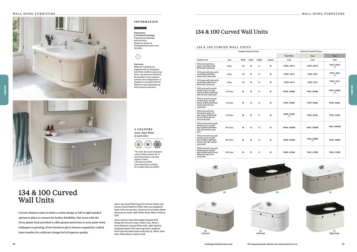 Curved cabinets come in either a centre design or left or right handed