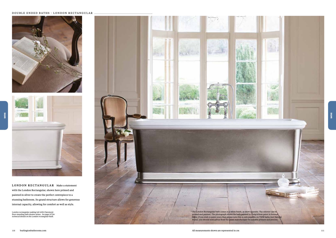 * The London Rectangular bath comes in a white finish, as show opposite. The exterior can be
