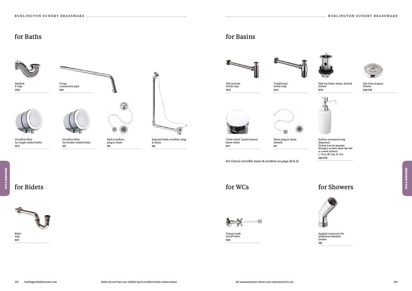 For Classic invisible waste & overflow see page 20 & 21