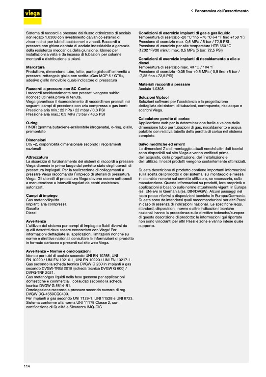 sono disponibili sul sito Viega e vanno verificati prima