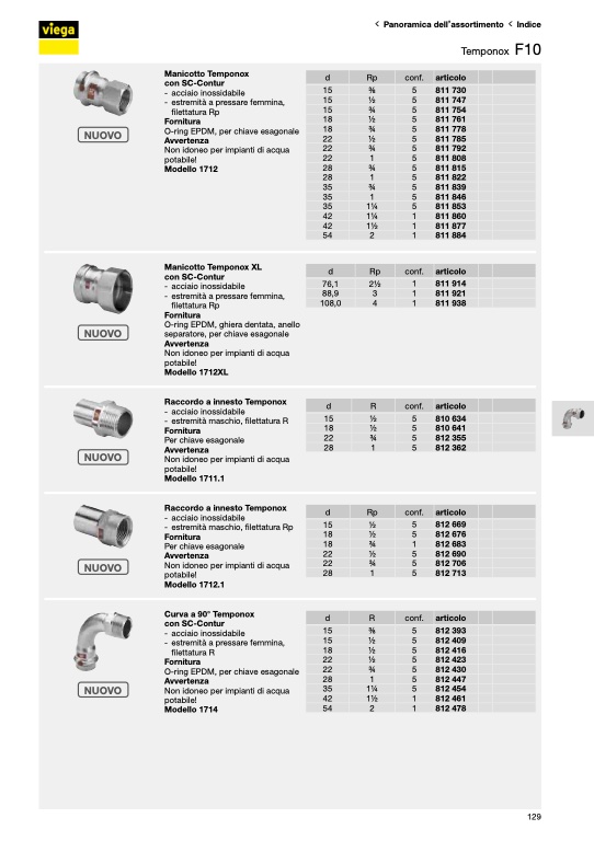 Raccordo a innesto Temponox