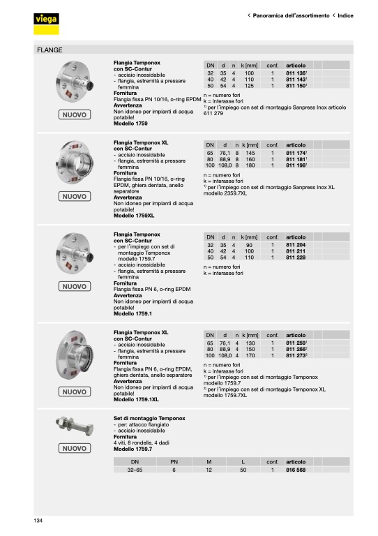 per l’impiego con set di montaggio Sanpress Inox articolo