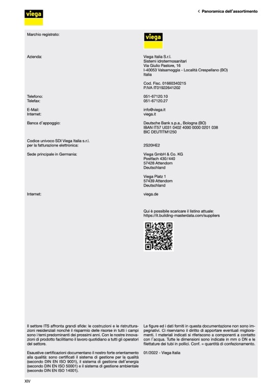 filettature dei tubi in pollici. Conf. = quantità di confezionamento.