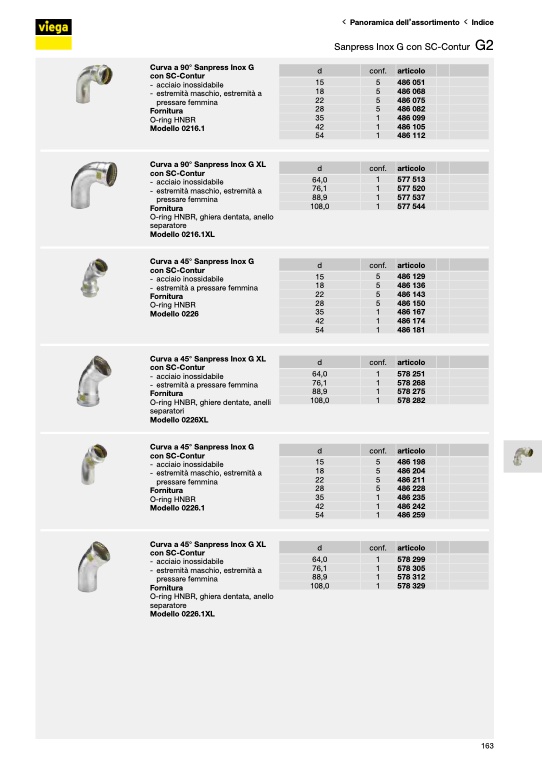 Curva a 45° Sanpress Inox G XL