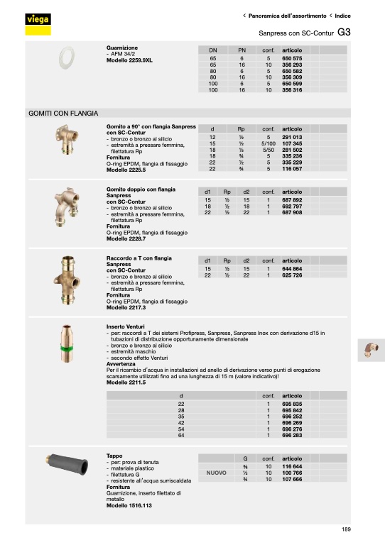 - per: raccordi a T dei sistemi Profipress, Sanpress, Sanpress Inox con derivazione d15 in