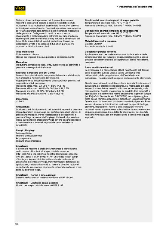 sono disponibili sul sito Viega e vanno verificati prima