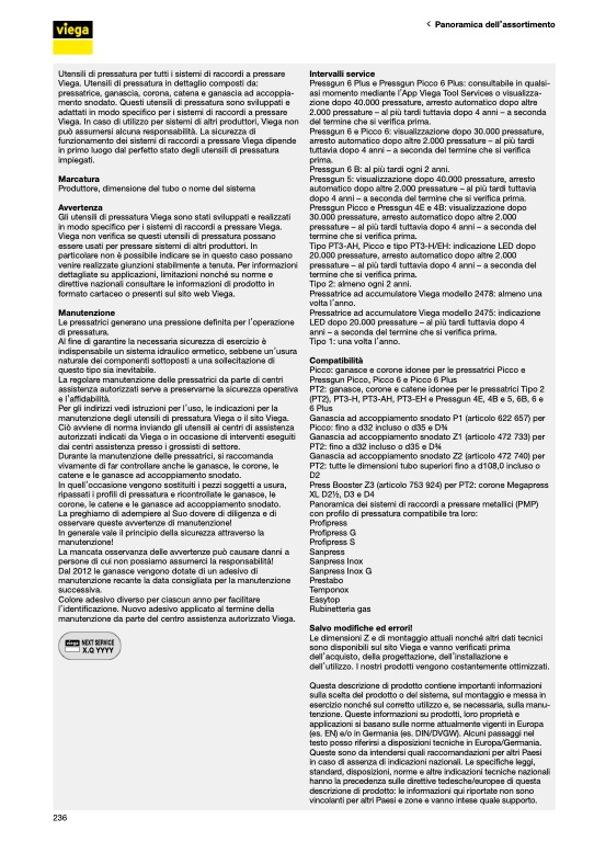 manutenzione degli utensili di pressatura Viega o il sito Viega.