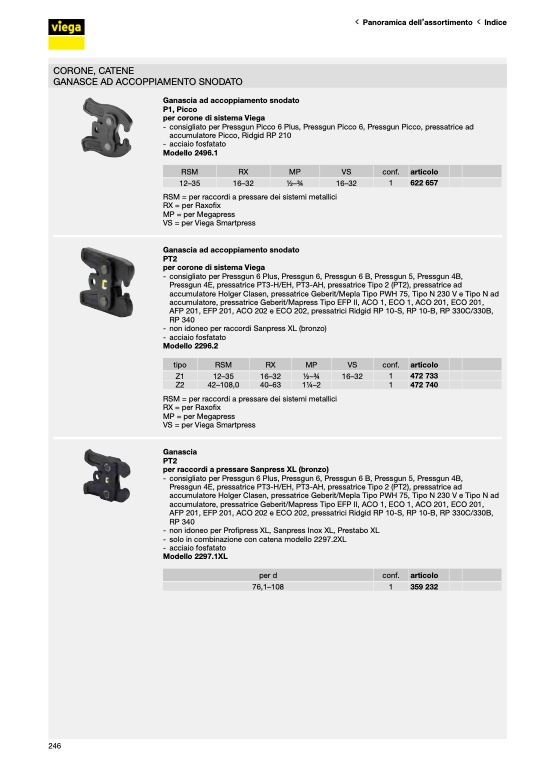 - non idoneo per Profipress XL, Sanpress Inox XL, Prestabo XL