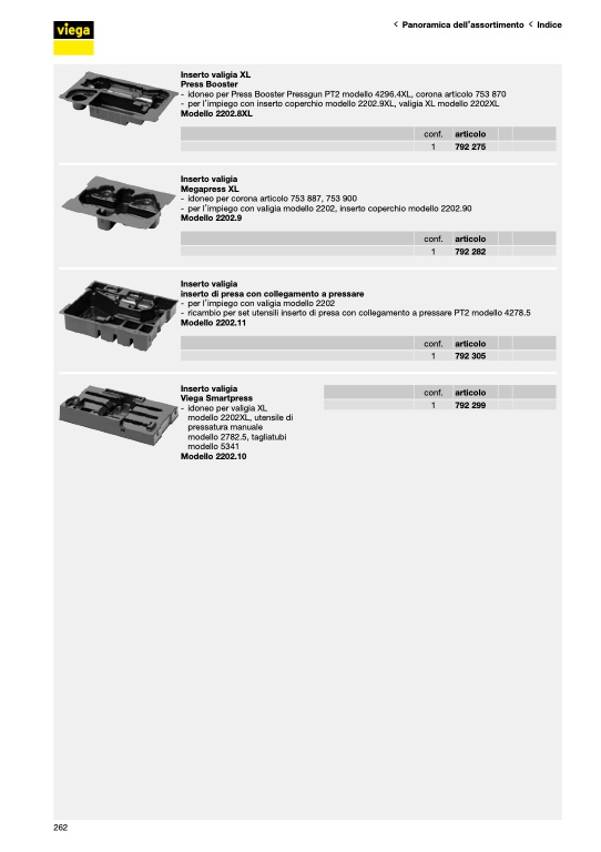 - per l’impiego con valigia modello 2202, inserto coperchio modello 2202.90