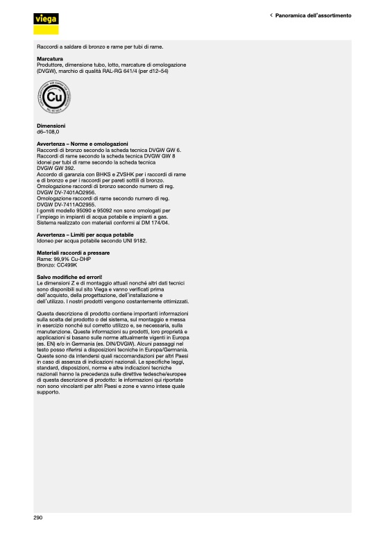sono disponibili sul sito Viega e vanno verificati prima