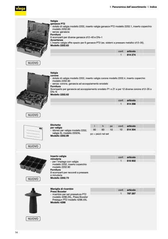 - dotato di valigia modello 2202, inserto valigia ganasce PT2 modello 2202.1, inserto coperchio