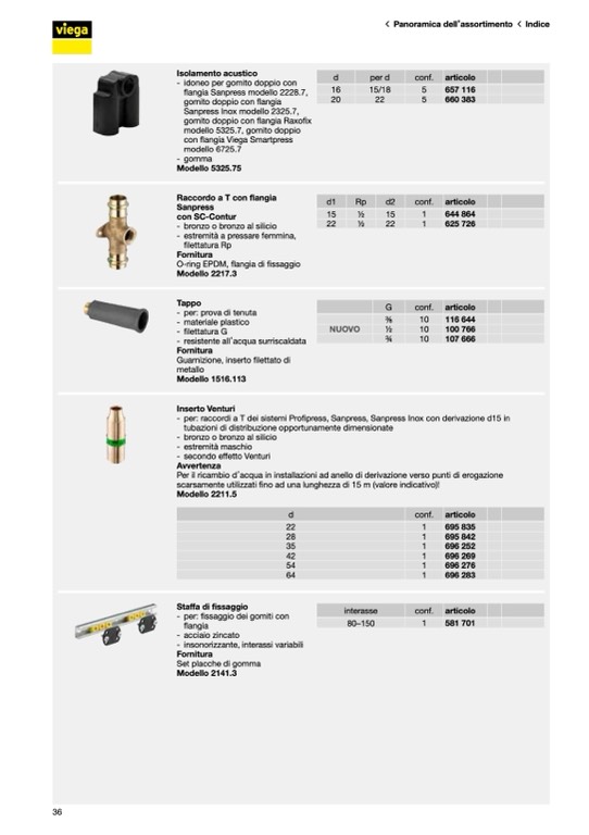 - per: raccordi a T dei sistemi Profipress, Sanpress, Sanpress Inox con derivazione d15 in
