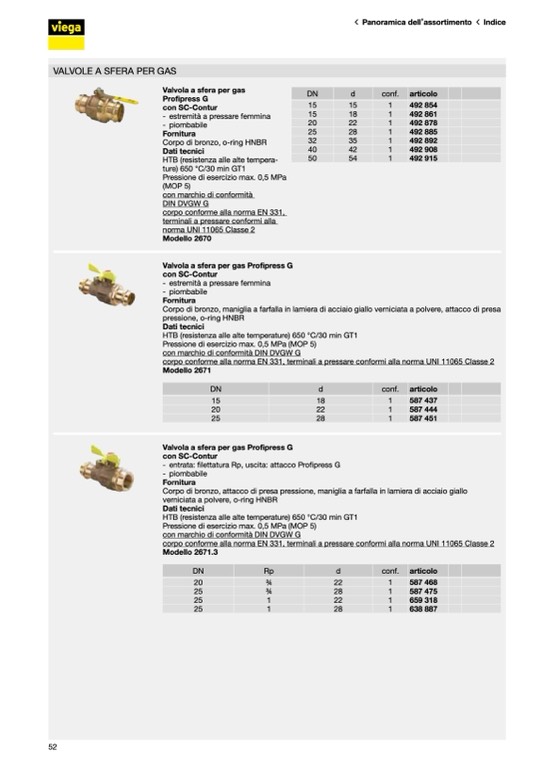 corpo conforme alla norma EN 331, terminali a pressare conformi alla norma UNI 11065 Classe 2