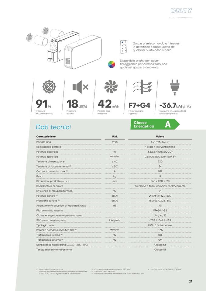 Sensibilità al flusso d'aria (variazioni +20Pa -20Pa)